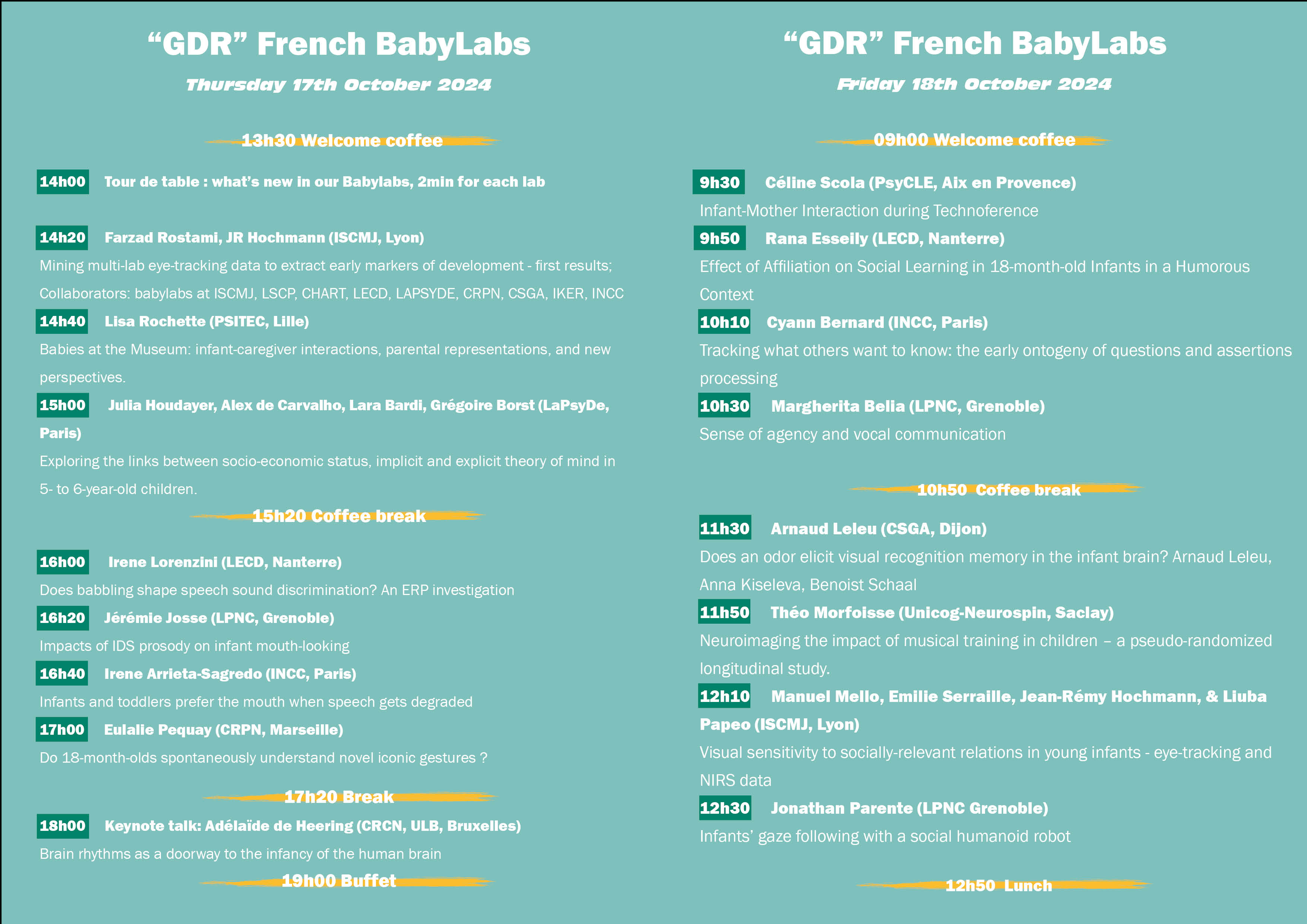 Chaque année, tous ces laboratoires se recontrent pour discuter des dernières découvertes sur le développement du nourrisson dans tous ces différents domaines. Sur ce site nous mettrons à jour les informations concernant cette réunion annuelle.